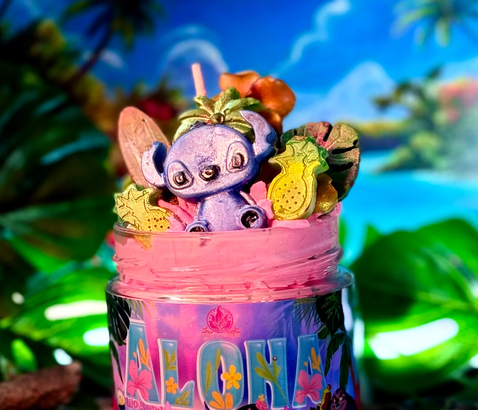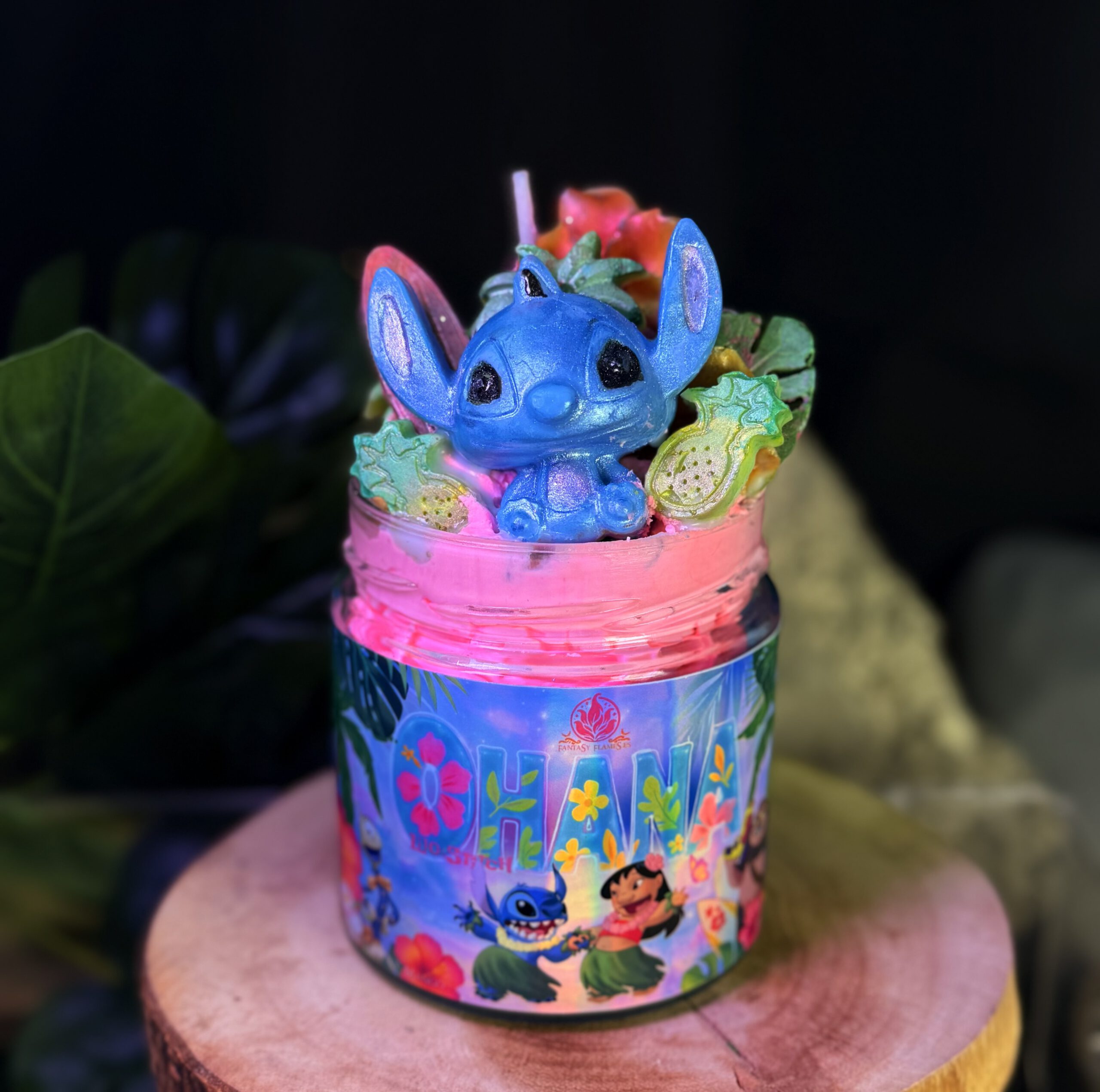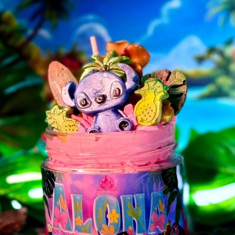 Lilo, Stitch, Disney, Ohana, Hawaii, tropical, piña, coco, playa, aroma frutal, aroma dulce, aroma tropical, familia, película Disney, clásico Disney, animación, azul, isla, hawaiano, aroma veraniego, edición Disney, inspiración Disney, personaje Disney, fantasía, velas Disney, velas literarias, velas de fantasía, colección Disney, pack Disney, fragancia tropical, inspiración hawaiana, personaje tierno, mar, vacaciones, infancia, nostalgia, aroma de piña, aroma de coco, edición limitada, personajes Disney