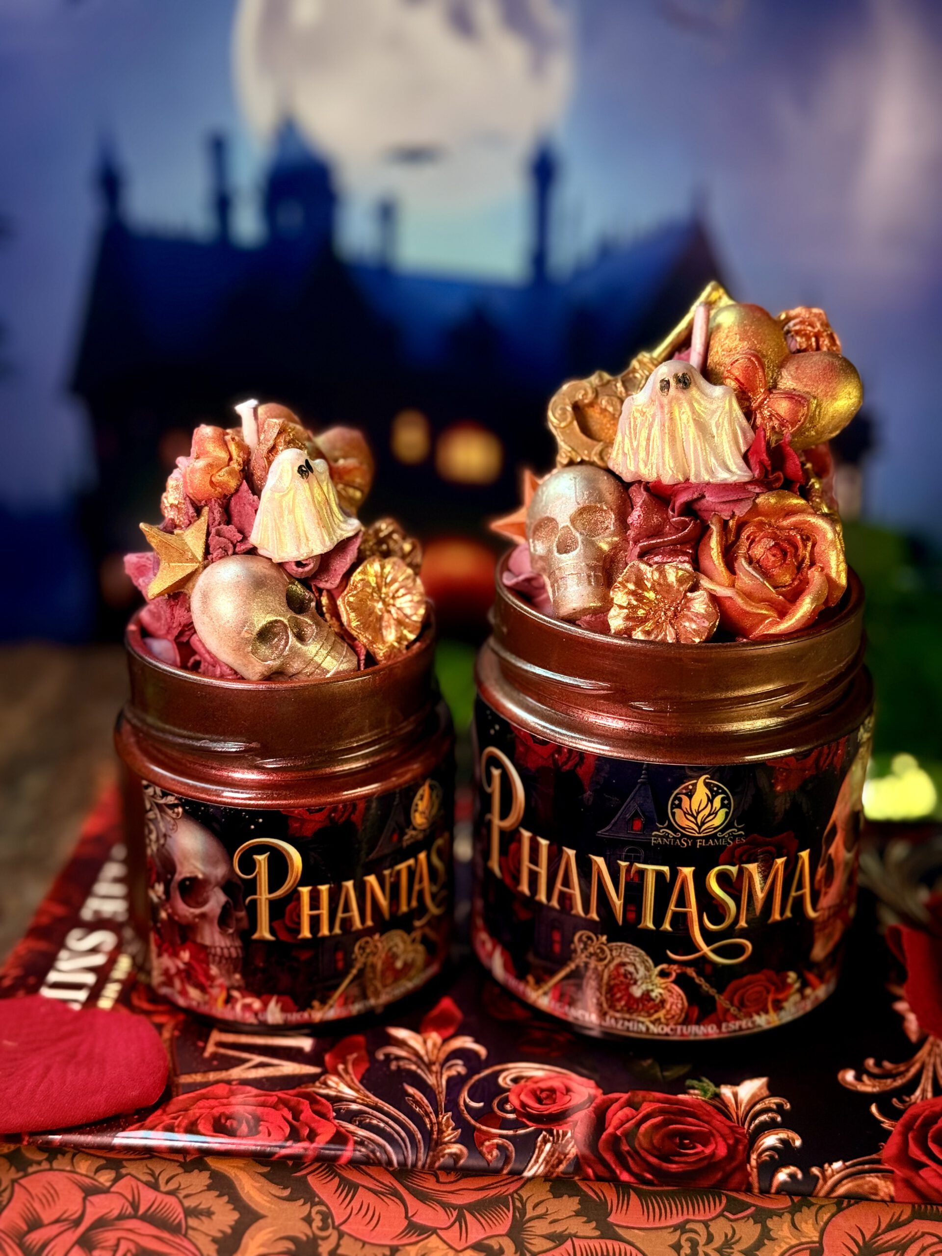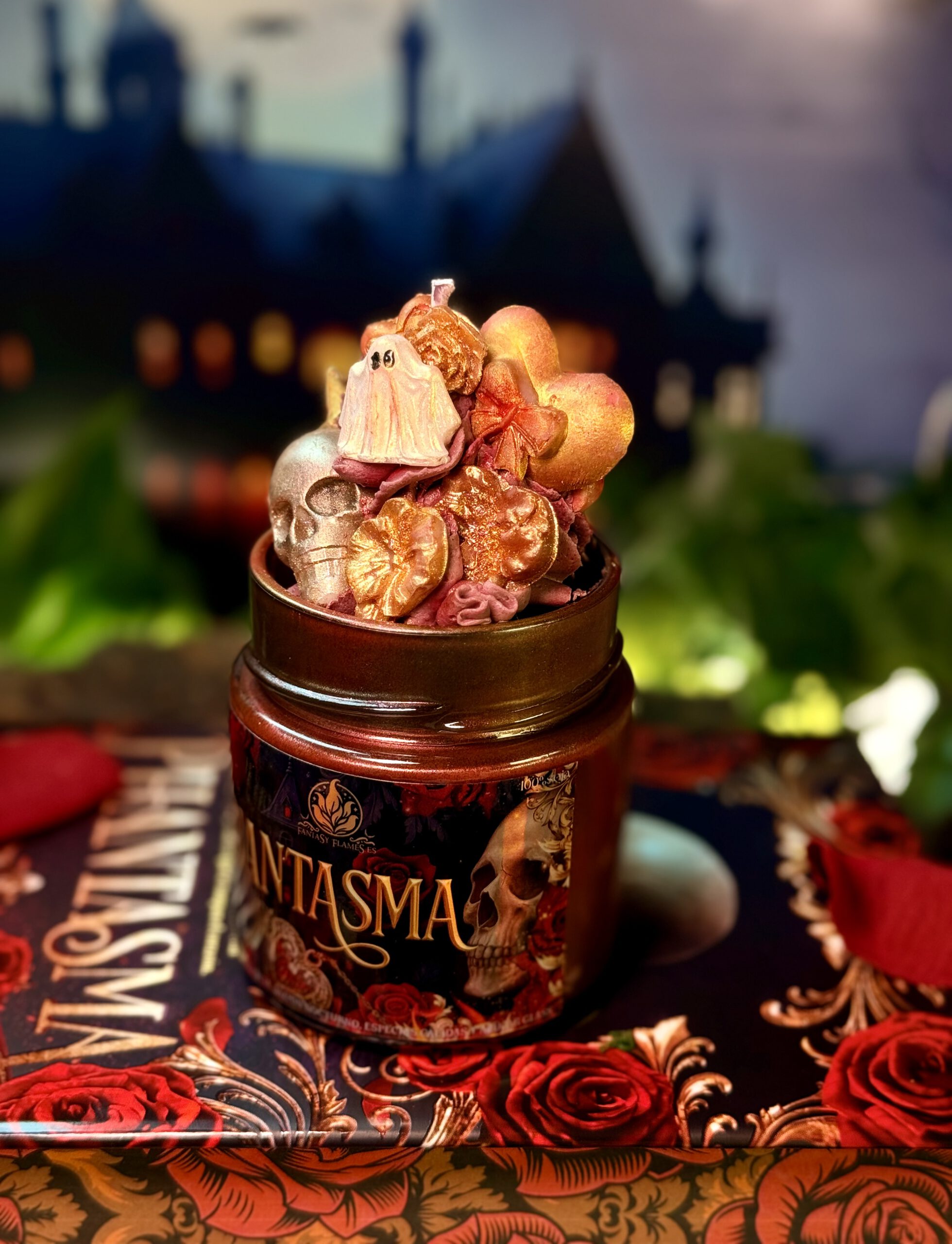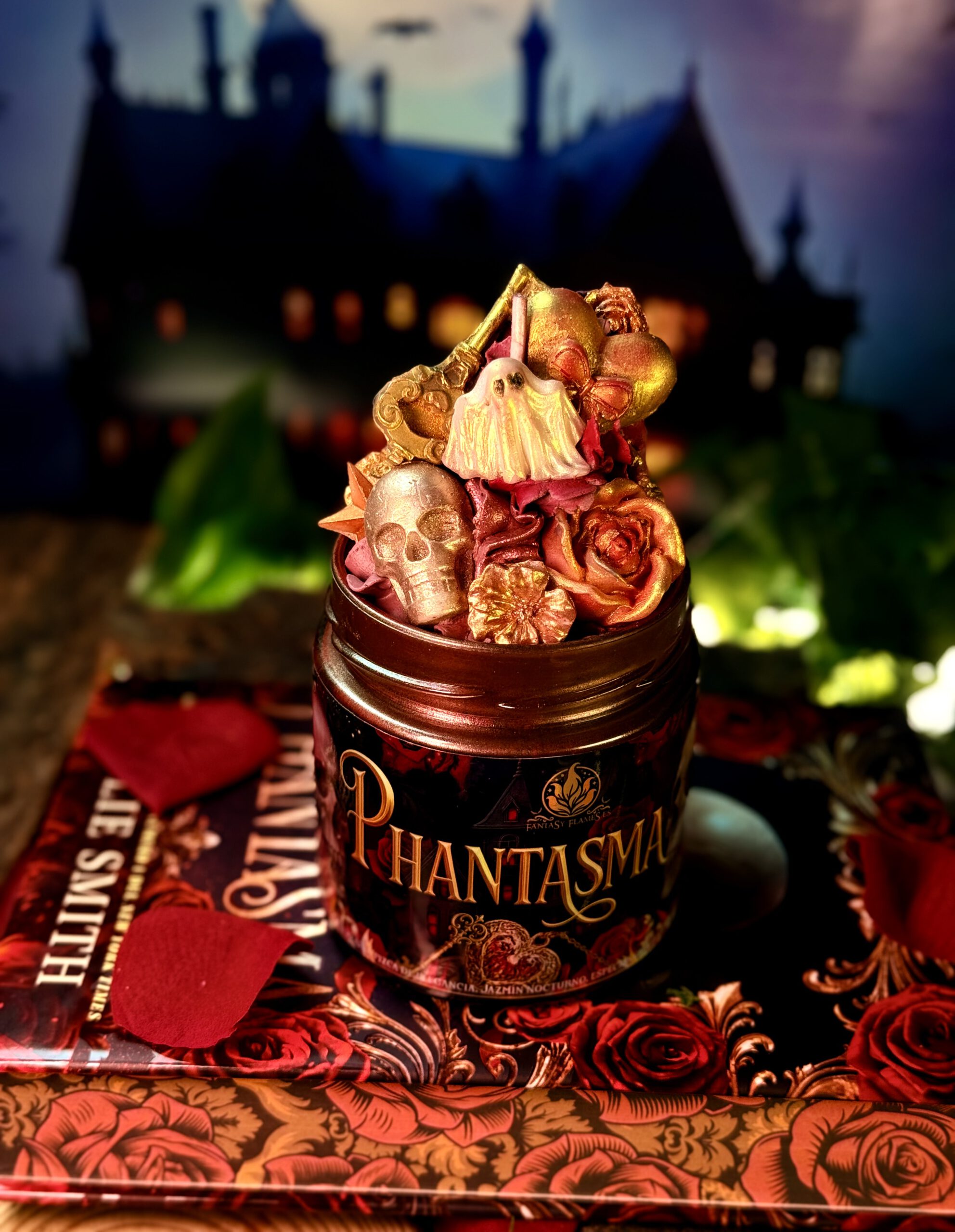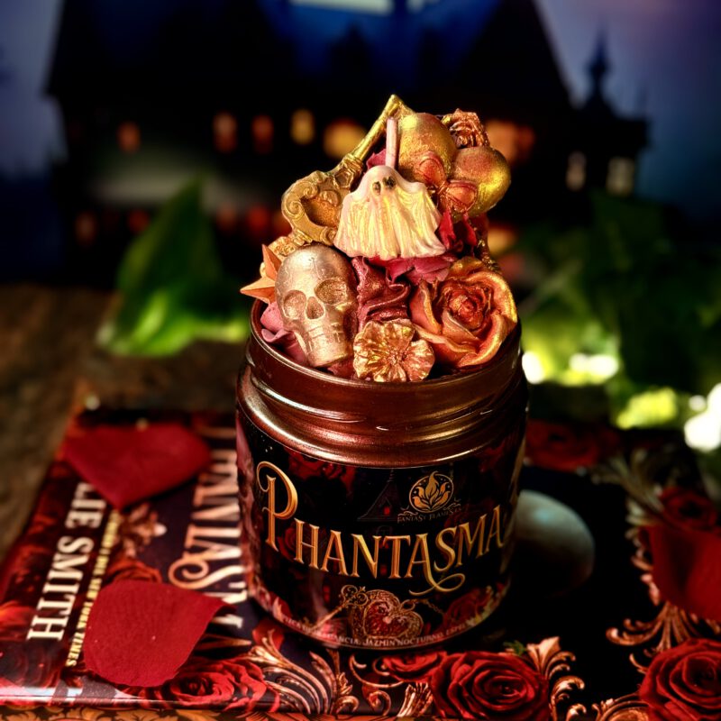 Phantasma, vela Phantasma, Kaylie Smith, novela Phantasma, Ediciones Hidra, Ophelia, Blackwell, vela literaria Phantasma, vela de Nueva Orleans, vela inspirada en libros, vela de dark romance, dark romance candle, vela dark fantasy, vela de fantasía oscura, Fantasy Flames, velas literarias España, vela aromática Phantasma, beignets azúcar glas, jazmín nocturno, especias, vainilla suave